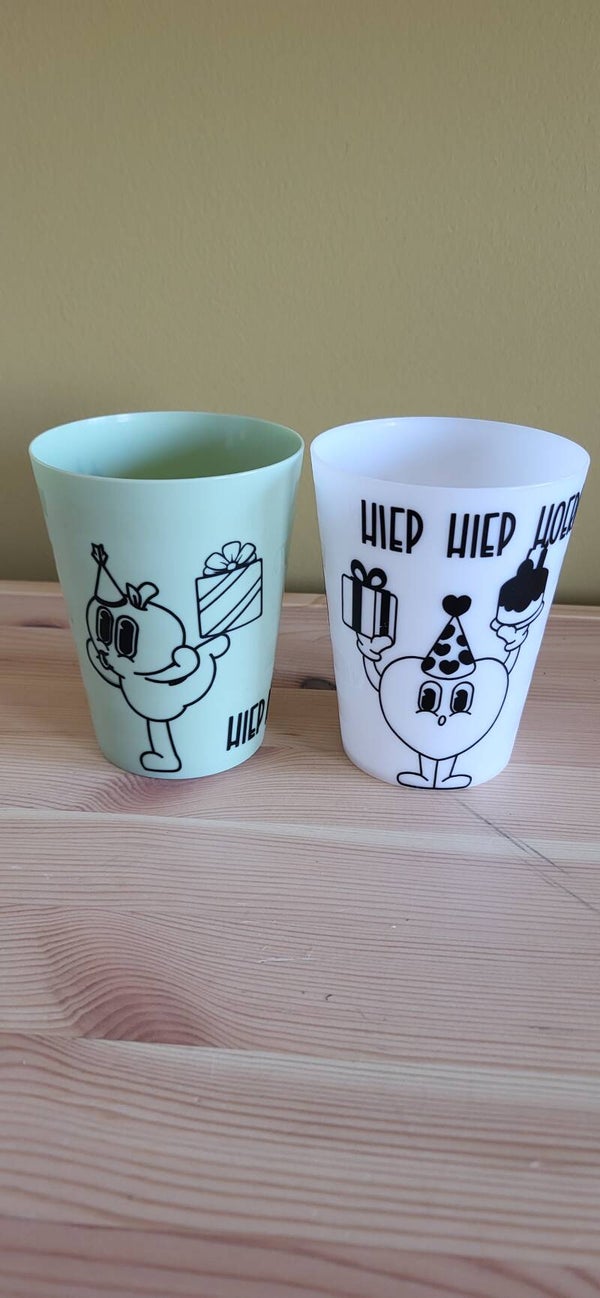 Super leuke bekers met een afbeelding of thema naar keuze erop. Niet alleen om uit te drinken, maar ook een leuk idee voor een traktatie op school.