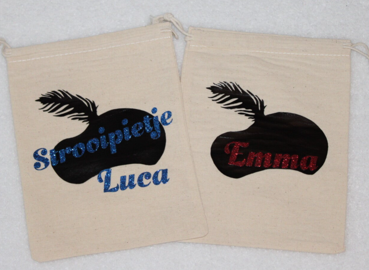 Een katoenen zakje om kruidnoten of ander strooigoed in te bewaren. Verkrijgbaar in meerdere varianten.