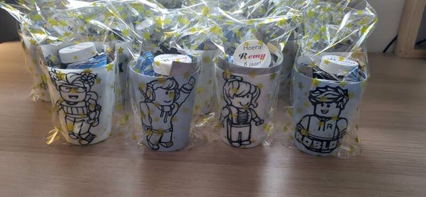 De bekers kunnen bedrukt worden met verschillende afbeeldingen of teksten. Laat dit achter bij de opmerkingen.