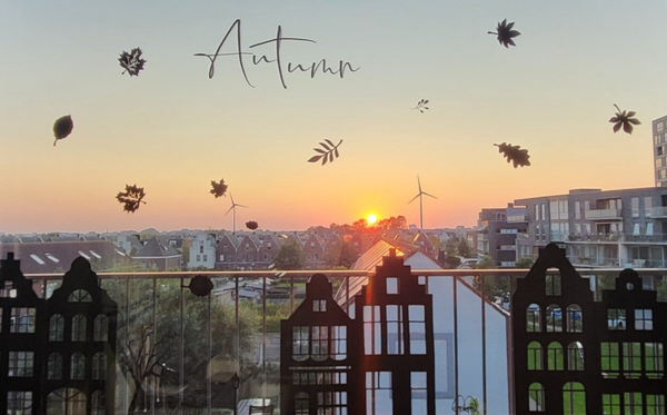 In de combideal zitten 6 grote en 6 kleine huisjes. Met een daarbij door jou gekozen thema, zoals de herfst. Hier in zitten bladeren, tekst Autumn, boom, paddenstoel enzo.