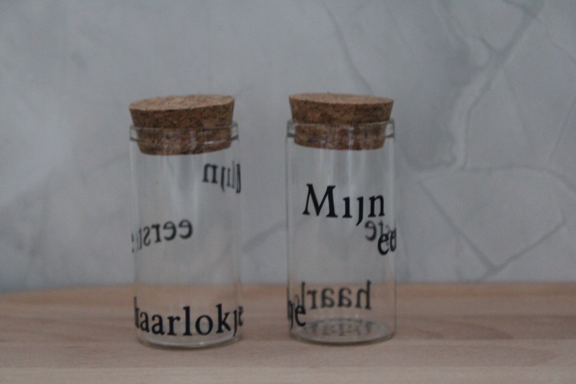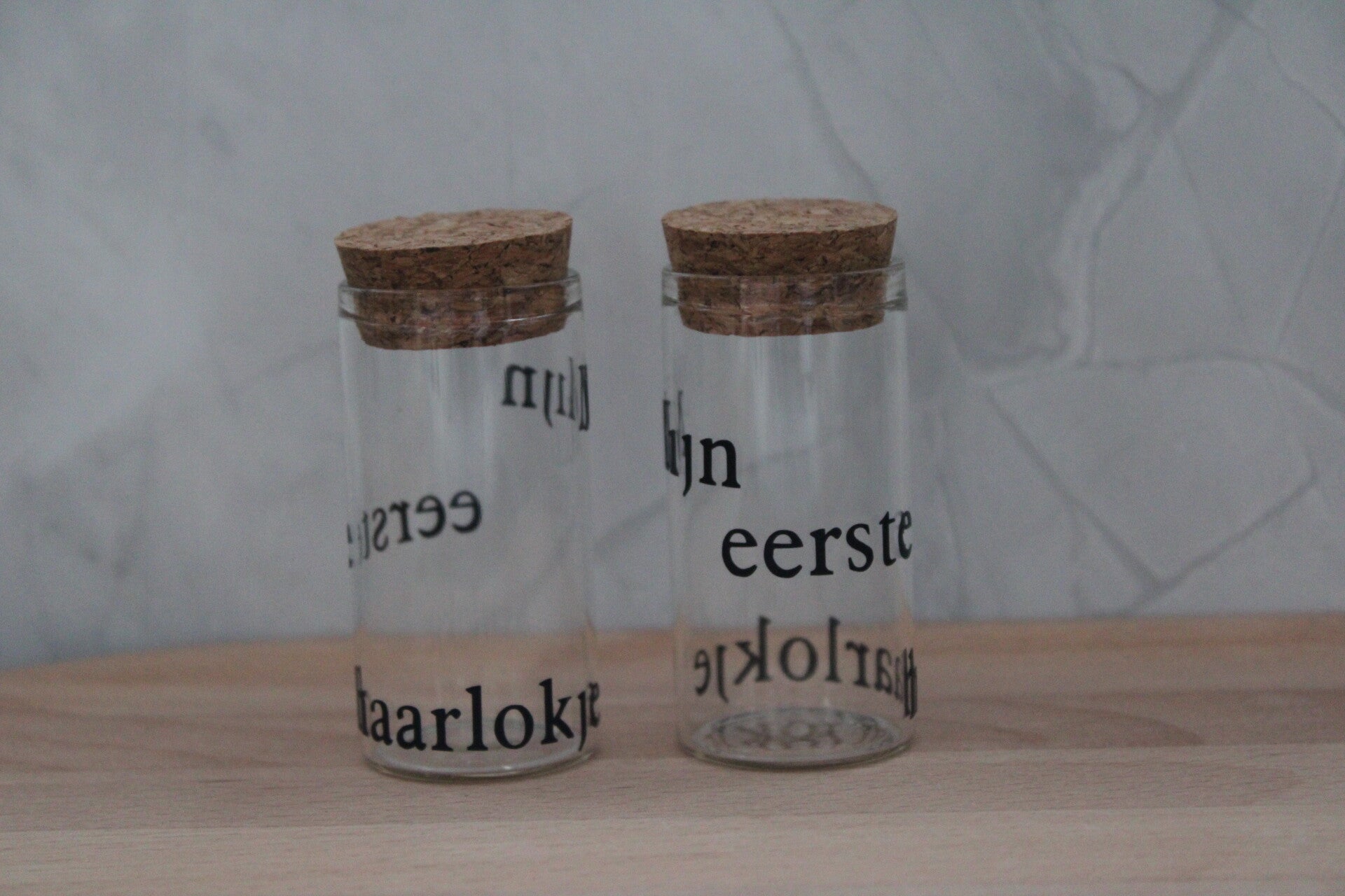 Glazen bewaarbuisje waar je de eerste haarlokjes van je zoon/dochter in kan bewaren.
